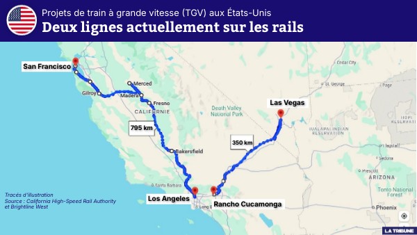 Tracés d'illustration Source : California High-Speed Rail Authority et Brightline West