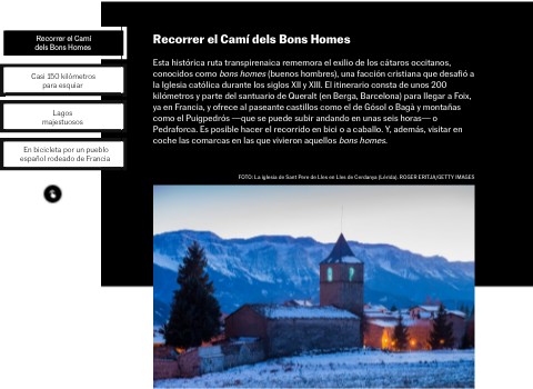 Esta histórica ruta transpirenaica rememora el exilio de los cátaros occitanos, conocidos como bons homes (buenos hombres), una facción cristiana que desafió a la Iglesia católica durante los siglos XII y XIII. El itinerario consta de unos 200 kilómetros y parte del santuario de Queralt (en Berga, Barcelona) para llegar a Foix, ya en Francia, y ofrece al paseante castillos como el de Gósol o Bagà y montañas como el Puigpedrós —que se puede subir andando en unas seis horas— o Pedraforca. Es posible hacer el recorrido en bici o a caballo. Y, además, visitar en coche las comarcas en las que vivieron aquellos bons homes.