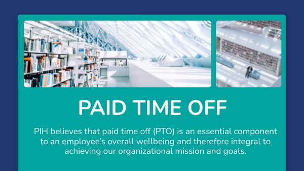 PIH believes that paid time off (PTO) is an essential component to an employee’s overall wellbeing and therefore integral to achieving our organizational mission and goals.