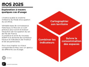 L'Institut publie le onzième millésime du Mode d'occupationdu sol (Mos). Véritable base de connaissance historique, le Mos est un outil précieux pour suivre et évaluer l'évolution de l'occupation du solde l'Île-de-France.Il constitue le socle du nouveau SDRIF-E et alimente de nombreux travaux et indicateurs de l'Institutet de ses partenaires. Pour vous inspirer ou mieux comprendre le Mos, voici un aperçu de différents cas d'usage.