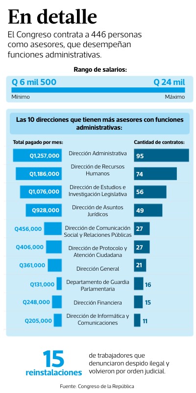 El Congreso contrata a 446 personas como asesores, que desempeñan funciones administrativas.