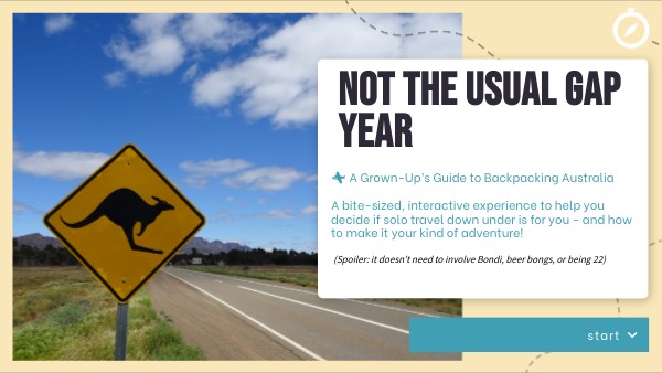 ✈️ A Grown-Up’s Guide to Backpacking Australia A bite-sized, interactive experience to help you decide if solo travel down under is for you - and how to make it your kind of adventure!