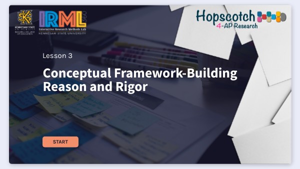 Note: As you work through Hopscotch 4-AP Research, your conceptual framework will evolve, and you will construct an argument for your research using insights from your literature review, research design, and methods. You will draw on what you already know to explain why your study's topic matters and why the methods you propose to study it are appropriate and rigorous.
