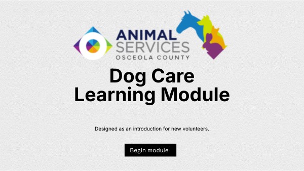 - All dog care volunteers must complete this training.