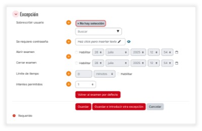 CAM3T6.03 opciones de excepción de usuario