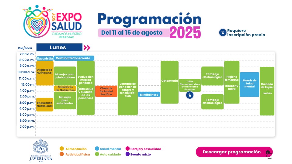 Hora: 11:00a.m. - 1:00 p.m. Lugar: Sala Talleres II Centro de Bienestar