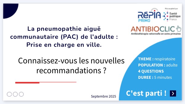 La pneumopathie aiguë communautaire (PAC) de l'adulte : Prise en charge en ville.