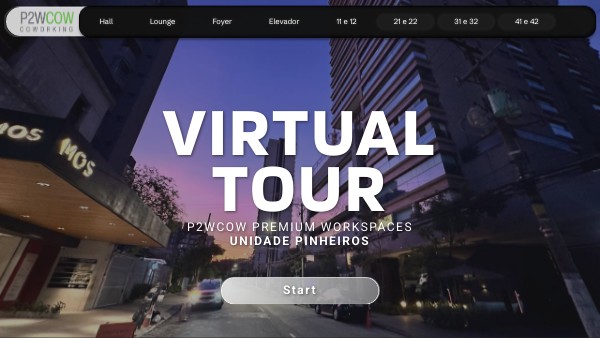 Você está prestes a embarcar em um tour virtual exclusivo do P2WCOW Pinheiros. Esta não é apenas uma visita; é a sua jornada interativa personalizada pelos nossos espaços vibrantes, projetada para mostrar nosso ambiente único e as possibilidades que ele oferece. Cada área conta uma história, e você decide como ela se desenrola, clique nos elementos para explorar!