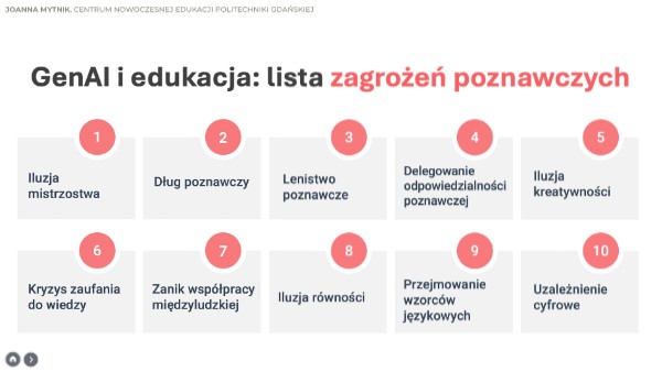 „To nie ja, to AI”, rozmycie autorstwa i odpowiedzialności za treść. Rozmycie granicy między wiedzą własną a wiedzą wygenerowaną przez narzędzie, skutkujące obniżeniem poczucia odpowiedzialności za treść, decyzje poznawcze i etykę autorstwa.