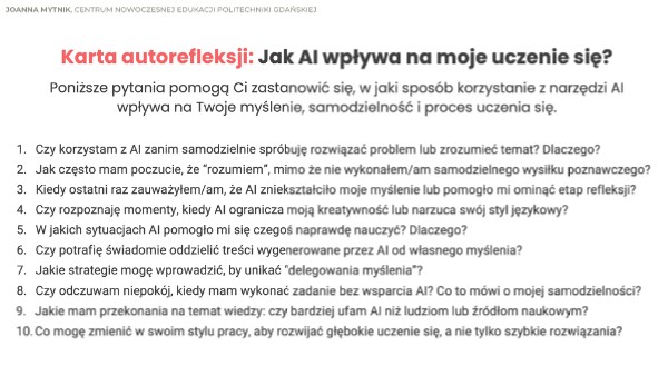 Karta autorefleksji AI uczenie się (student)