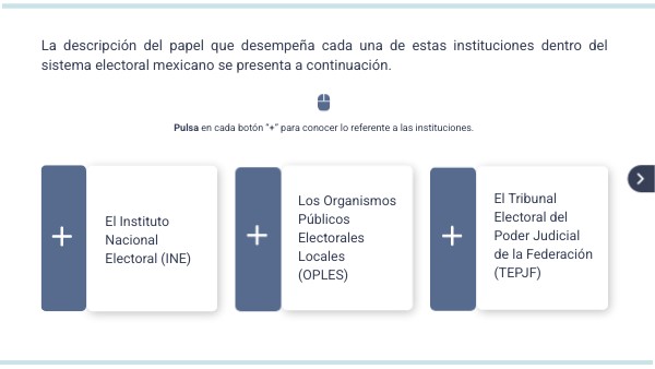 La descripción del papel que desempeña cada una de estas instituciones dentro del sistema electoral mexicano se presenta a continuación.