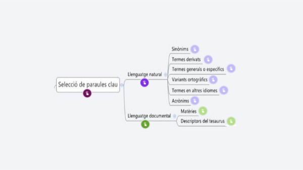 Per a la selecció de paraules clau, les provinents del llenguatge natural són les més senzilles, poden ser les del propi enunciat del tema però també és recomanable fer ús de sinònims, derivats, termes específics, acrònims, etc.L'ambigüitat del llenguatge natural fa que aquest sigui poc precís en la recuperació d'informació, però la seva flexibilitat fa que el seu ús sigui molt important. Cal intentar no perdre resultats pertinents per no haver emprat el concepte correcte.