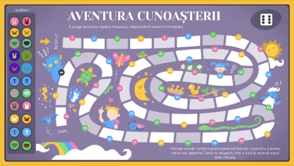 Fiecare număr conține provocarea lui! Rezolv-o pentru a putea trece mai departe. Dacă nu reușești, stai o tură și aruncă zarul data viitoare.
