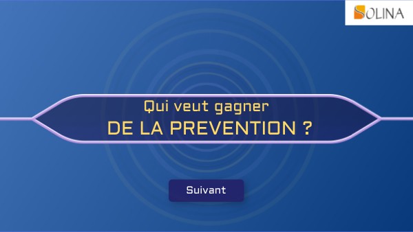 Bonjour et bienvenue à QUI VEUT GAGNER DE LA PREVENTION Répondez aux 7 Questions et obtenez un maximum de points en repondant correctement