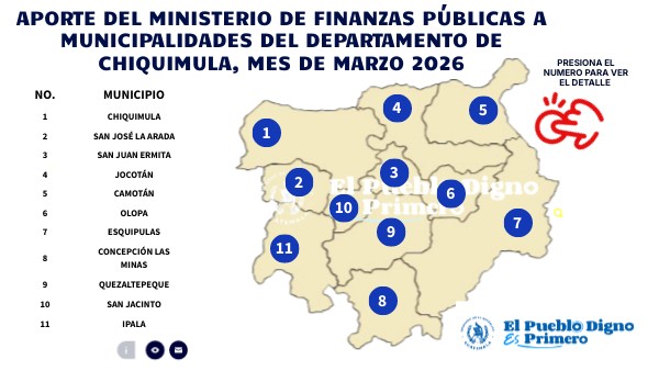 APORTE DEL MINISTERIO DE FINANZAS PÚBLICAS A MUNICIPALIDADES DEL DEPARTAMENTO DE CHIQUIMULA, MES DE MARZO 2026