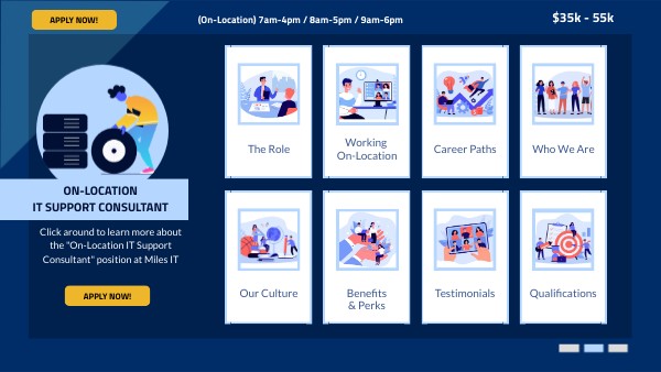 Click around to learn more about the "On-Location IT Support Consultant" position at Miles IT
