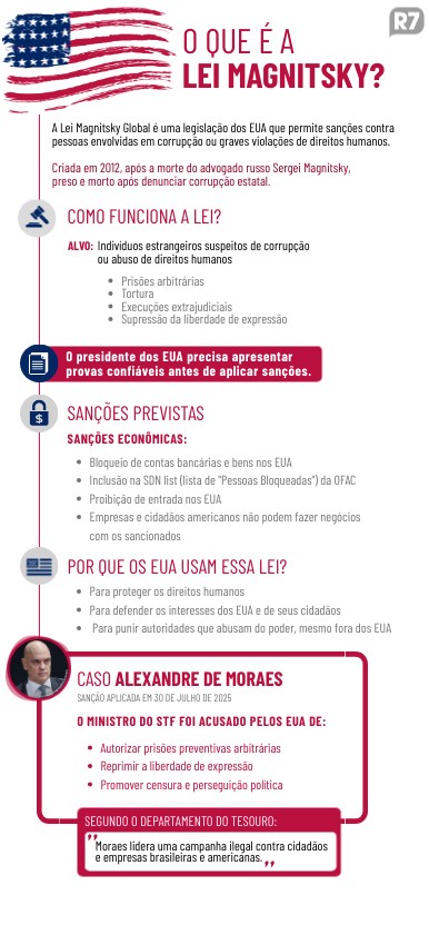A Lei Magnitsky Global é uma legislação dos EUA que permite sanções contra pessoas envolvidas em corrupção ou graves violações de direitos humanos.
