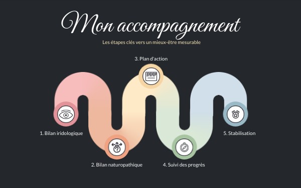 La prochaine étape sera donc de croiser les informations du bilan iridologique avec une anamnèse naturopathique où j'en apprendrai plus sur vos habitudes de vie et de votre histoire. A la suite de ça, on va déterminer vos besoins. D'autres séances seront nécessaires pour assurer le suivi et la bonne marche des conseils préconisés. Elles peuvent inclure selon les besoins, des séances de réflexologie, de phytothérapie par exemple.