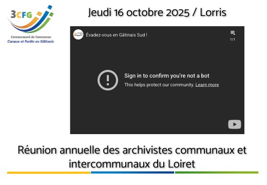 Accueil des participants Mots d'ouverture d'Albert FEVRIER, Président de la Communauté de communes Canaux et Forêts Présentation des nouveaux collégues Présentation du service commun d’archivage de la 3CFG Archivage numérique et opérations de cleaning days : retour d'expérience d'Ingré Élections municipales 2026 : le futur procès-verbal de récolement Actualités et questions des services d'archives communales, intercommunales et itinérants (offres en matière d’archivage numérique, permis de louer et dossiers d’autorisation de travaux au titre des ERP, …) Repas au « Point du Jour » (25 Place du Mail à Lorris) Visite guidée de Lorris et de son orgue par l’Office du tourisme Gâtinais Sud