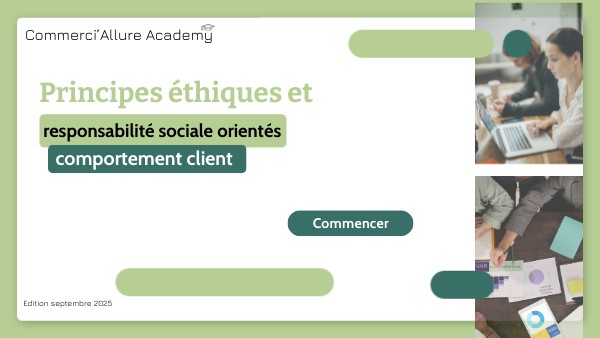 1. Expliquer les enjeux de la RSE appliquée à la relation client à l’aide d’exemples concrets. 2. Identifier les principaux fondements de l’éthique professionnelle dans la relation client à partir de scénarios proposés. 3. Reconnaître des comportements contraires à l’éthique et à la RSE dans des situations simulées. 4. Appliquer les principes éthiques et la RSE dans un dialogue avec un client.