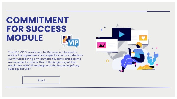 The NCS VIP Commitment for Success is intended to outline the agreements and expectations for students in our virtual learning environment. Students and parents are expected to review this at the beginning of their enrollment with VIP and again at the beginning of any subsequent year.