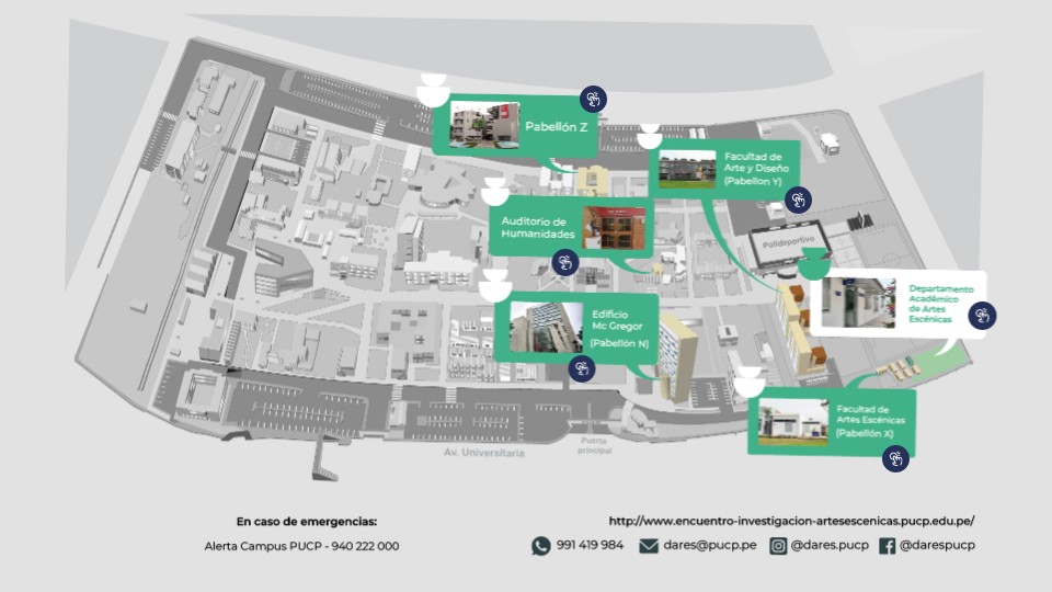 Mapa interno de aulas y espacios para el IV Encuentro Internacional de Investigación en las Artes Escénicas 2025