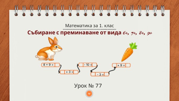 Самоподготовка № 77. Събиране с преминаване от вида 6+, 7+, 8+, 9+