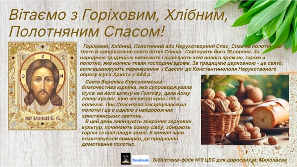 Вітаємо з Горіховим, Хлібним, Полотняним Спасом!
