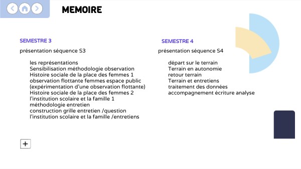 présentation séquence S3 les représentations Sensibilisation méthodologie observationHistoire sociale de la place des femmes 1 observation flottante femmes espace public (expérimentation d'une observation flottante)Histoire sociale de la place des femmes 2 l'institution scolaire et la famille 1 méthodologie entretien construction grille entretien /question l'institution scolaire et la famille /entretiens