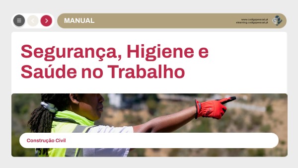 • Interpretar os principais diplomas legais sobre Segurança, Higiene e Saúde no Trabalho, bem como normas de legislação complementar e específica. • Identificar as causas de acidentes de trabalho, suas consequências e custos associados. • Identificar os riscos inerentes à execução de obras em estaleiro, assim como as respetivas medidas para a sua eliminação ou redução. • Reconhecer a importância do Manual de Segurança do Estaleiro e do Plano de Sinalização. • Caracterizar o Plano de Segurança e Saúde (PPS) e os processos da sua implementação.