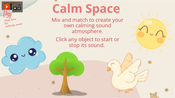 Mix and match to create your own calming sound atmosphere. Click any object to start or stop its sound.