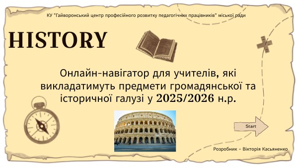 Онлайн-навігатор для учителів, які викладатимуть предмети громадянської та історичної галузі у 2025/2026 н.р.
