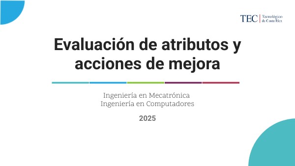 - Informe de evaluación de atributos, utilizando la herramienta del TEC Digital se descargan los resultados de la evaluación de atributos y se realiza el informe. El Informe es avalado por el Consejo de Escuela.