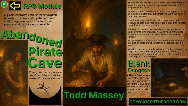 Blank Dungeon RPG Module adventure where pirates have hidden treasure in some abandoned caves.