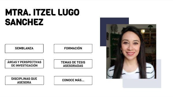 Diana Itzel Lugo Sánchez es Candidata a Doctora en Ciencias Políticas y Sociales por la UNAM. Su línea de investigación abarca comunicación, tecnologías digitales y metodologías participativas. Actualmente, desarrolla su investigación doctoral en torno a procesos de subjetivación en mujeres adolescentes a través de las tecnologías digitales, diseñando enfoques participativos para abordar los desafíos éticos. Ha sido profesora en el Posgrado en la Universidad Pontificia Bolivariana y en la Universidad Rosario Castellanos. Es capacitadora en proyectos internacionales, colaborando con instituciones como la Universidad ISEP, y se encarga de la comunicación y difusión de la revista científica Comunicación y Sociedad (Q3) de la Universidad de Guadalajara. Además, ha impartido talleres y ponencias en torno a la relación entre niñeces-adolescencias y tecnologías digitales desde una perspectiva de género e intergeneracional en México y otros países. Co-coordinó el libro Caleidoscopio Metodológico: Explorando epistemes y experiencias. También es docente en el Diplomado en Competencias Interdisciplinarias e Inteligencia Artificial de la UNAM.