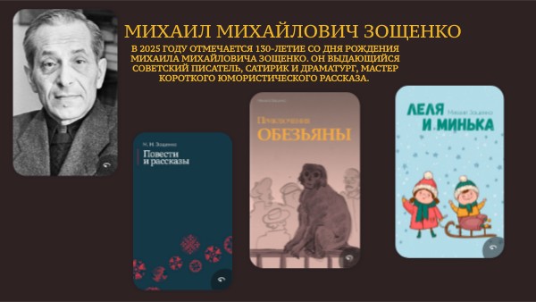 В 2025 году отмечается 130-летие со дня рождения Михаила Михайловича Зощенко. ОН выдающийся советский писатель, сатирик и драматург, мастер короткого юмористического рассказа.