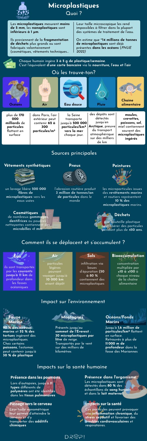 Ils proviennent de la fragmentation de déchets plus grands ou sont fabriqués volontairement (cosmétiques, vêtements techniques…