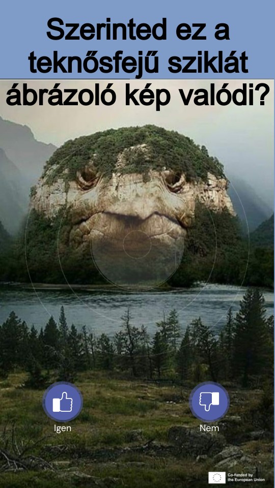 Ez egy manipulált kép, amelyen a sziklát úgy alakították át, hogy az hasonlítson egy teknős fejére. Ha egy fotó “túl jó” ahhoz, hogy igaz legyen, érdemes megállni egy pillanatra, majd utánanézni a kép eredetének más forrásokban is.
