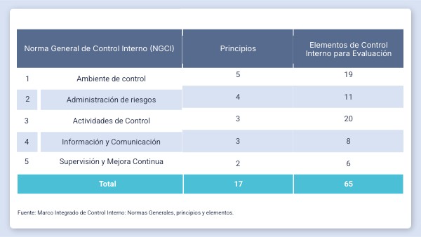 Fuente: Marco Integrado de Control Interno: Normas Generales, principios y elementos.