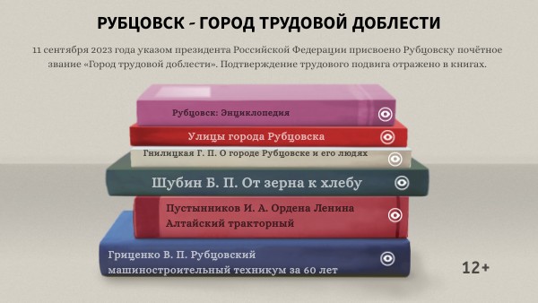 11 сентября 2023 года указом президента Российской Федерации присвоено Рубцовску почётное звание «Город трудовой доблести». Подтверждение трудового подвига отражено в книгах.
