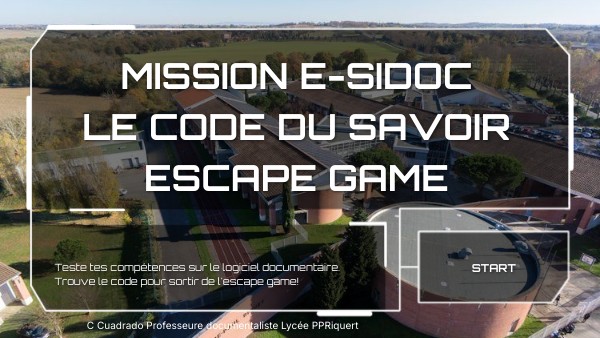 Le CDI vient de recevoir une collection de documents précieux mais le coffre numérique qui les protège est vérouillé. Pour l'ouvrir, tu dois réussir 4 missions dans le portail documentaire e-sidoc (*). Chaque mission résolue te donne un chiffre ou une lettre du code final. Une fois le code complet trouvé, tu pourras déverrouiller le coffre et sortir de l'escape game.
