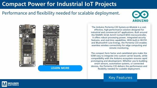 The compact form factor and castellated pins make the SOM easy to integrate into custom carrier boards, while compatibility with the Arduino ecosystem ensures rapid prototyping and development. Whether you're building smart sensors, automation systems, or connected devices, the Portenta C33 delivers the performance and flexibility needed for scalable deployment.