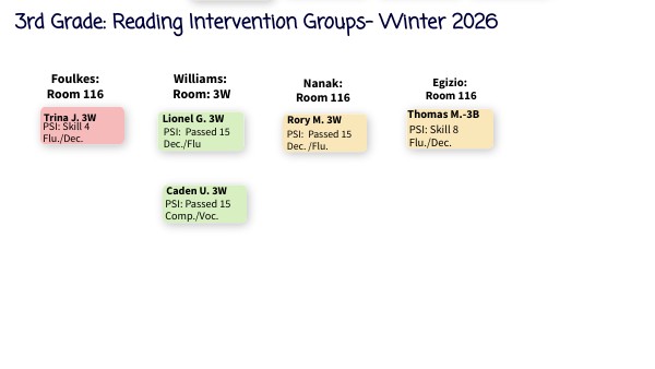 3rd Grade: Reading Intervention Groups- Winter 2026