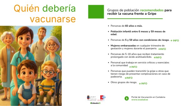 Grupos de población recomendados para recibir la vacuna frente a Gripe