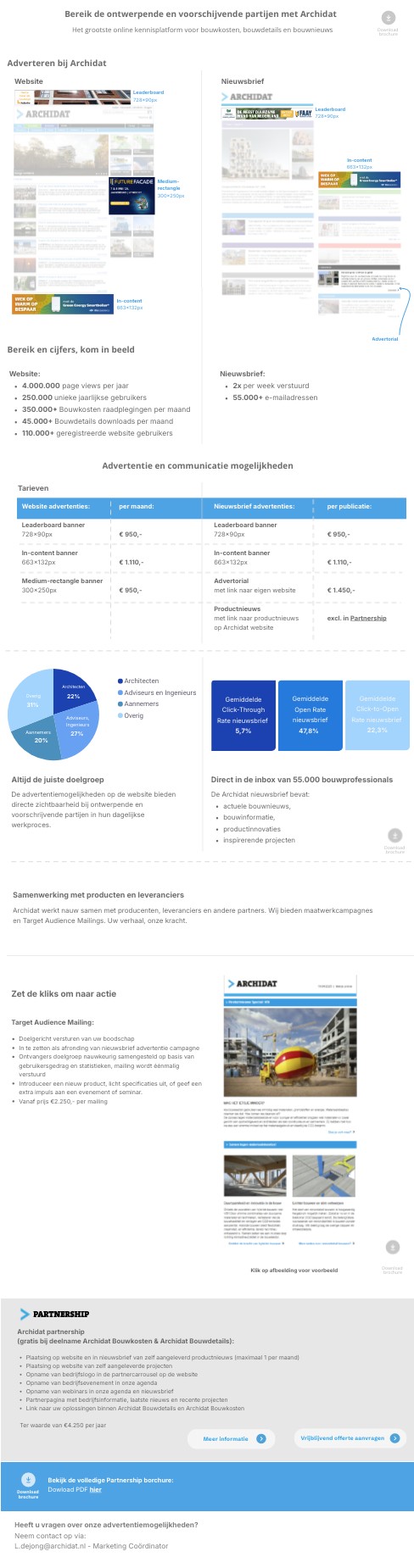Nieuwsbrief advertenties:Leaderboard banner 728x90px In-content banner663x132pxAdvertorialmet link naar eigen websiteProductnieuwsmet link naar productnieuws op Archidat website