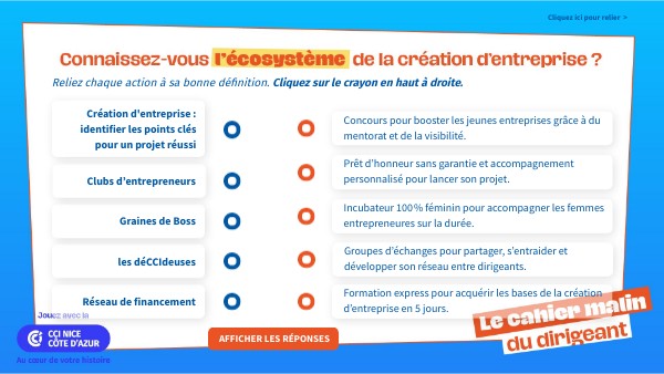 Reliez chaque action à sa bonne définition. Cliquez sur le crayon en haut à droite.