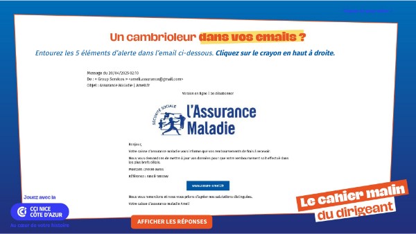 Entourez les 5 éléments d’alerte dans l’email ci-dessous. Cliquez sur le crayon en haut à droite.