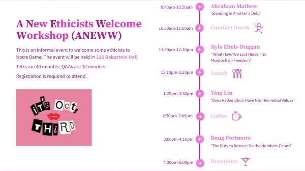 A N ew E thicists W elcome W orkshop (ANEWW)