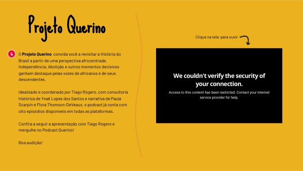 O Projeto Querino convida você a revisitar a História do Brasil a partir de uma perspectiva afrocentrada. Independência, Abolição e outros momentos decisivos ganham destaque pelas vozes de africanos e de seus descendentes. Idealizado e coordenado por Tiago Rogero, com consultoria histórica de Ynaê Lopes dos Santos e narrativa de Paula Scarpin e Flora Thomson-DeVeaux, o podcast já conta com oito episódios disponíveis em todas as plataformas.
