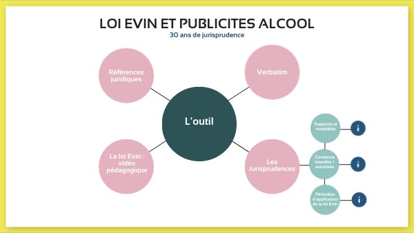Vous trouverez en page d’accueil un accès aux textes de la loi, à une vidéo explicative et bien entendu aux commentaires des jurisprudence. L’arborescence retenue découle de la structure de la loi, laquelle définit les supports et les contenus autorisés. Outre les deux rubriques supports et contenus, une troisième rubrique principale rassemble les décisions définissant le périmètre d'application de la loi Evin. Chacune de ces rubriques intègre différents thèmes. A l'intérieur de ces thèmes se trouvent les commentaires. Toutefois, nous proposons un index alternatif présentant un classement des supports sur lesquels les publicités concernées ont été diffusées (Internet, presse, événement, etc.).